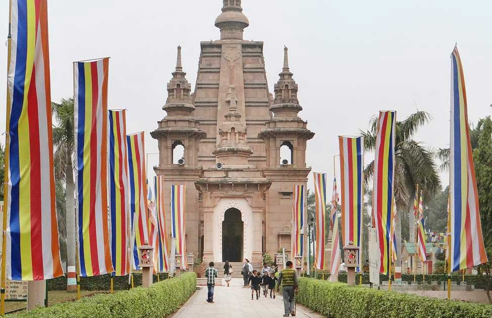 Sarnath is a place located 10 kilometres northeast of Varanasi, near the confluence of the Ganges and the Varuna rivers in Uttar Pradesh, India. According to Buddhist tradition, Sarnath is where, circa 528 BCE, at 35 years of age, Gautama Buddha taught his first sermon after attaining enlightenment at Bodh Gaya.